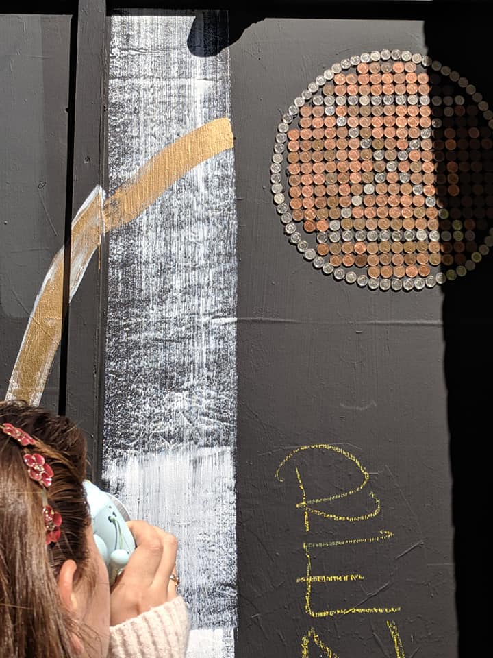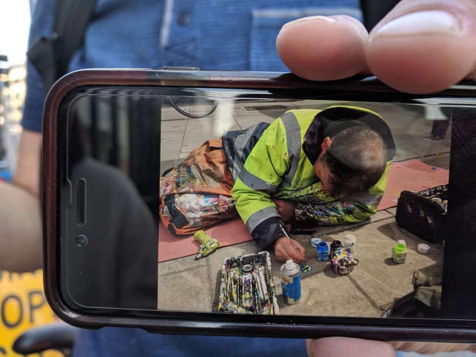 The above photo is from Dave’s phone (the artist Ben Wilson at work) and a couple samples that we found in Shoreditch. Ben Wilson has created over 10,000 of these gems. If you’re lucky, maybe you will stumble across one someday… or better yet, the artist himself!